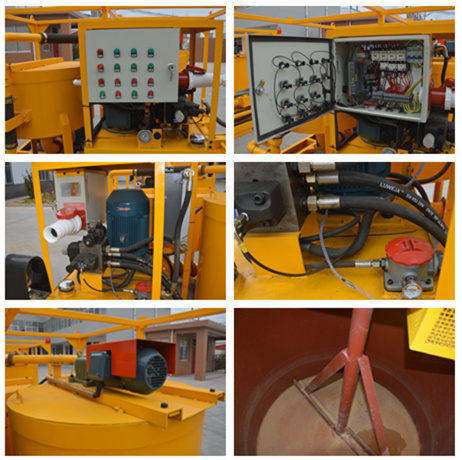 這臺(tái)機(jī)器是由攪拌器、儲(chǔ)存器器和灌漿泵組合而成,并固定在一個(gè)底座上。主要用于配制膨潤(rùn)土漿料、水泥漿料等,應(yīng)用于公路、鐵路、水電、建筑、礦山等地面和地下工程。