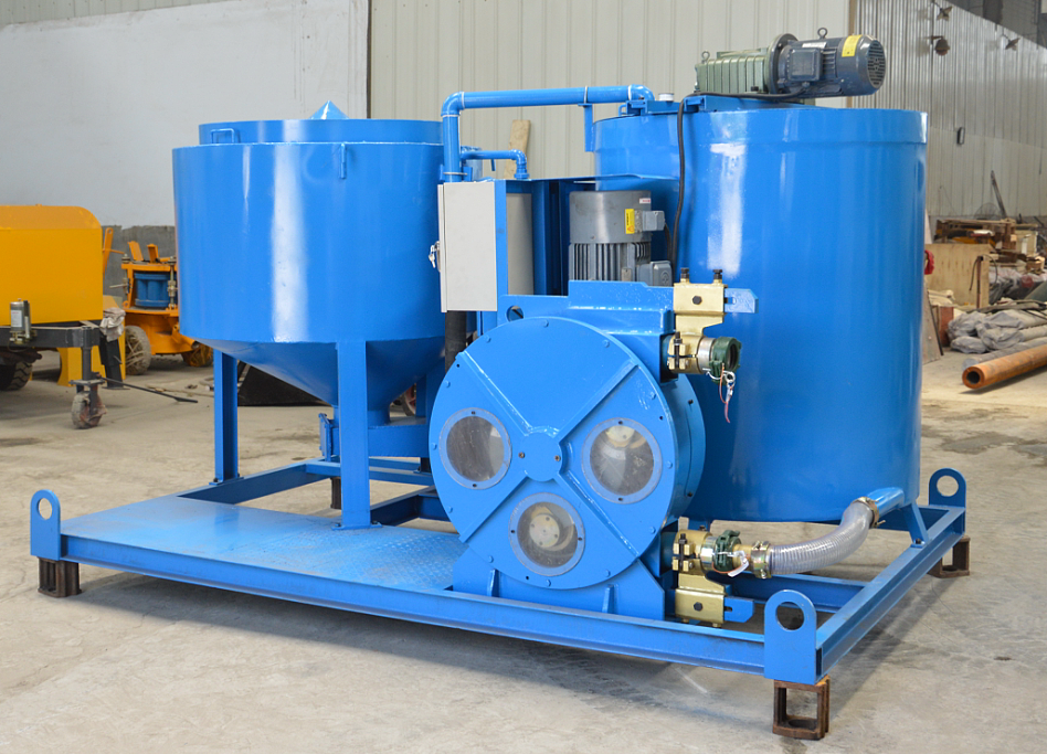 LGP800/1200/130H-E注漿泵站集制漿機、攪拌機、軟管泵于一體, 主要用于礦井、隧道、水利、地鐵、建筑、橋梁等地上地下施工地點的注漿堵水、填充空隙、破碎巖層等工程。制漿機采用高速渦流制漿,制漿均勻。能將水、水泥等介質(zhì)混合成均勻漿液,然后混合均勻的漿液被輸送到攪拌桶內(nèi),軟管泵從攪拌桶內(nèi)吸漿實現(xiàn)注漿或灌漿作業(yè);此時,可同步進行下一輪制漿,依次類推,可實現(xiàn)連續(xù)制漿、灌漿作業(yè)。軟管泵采用三個擠壓輪,其排漿連續(xù)、脈沖小。